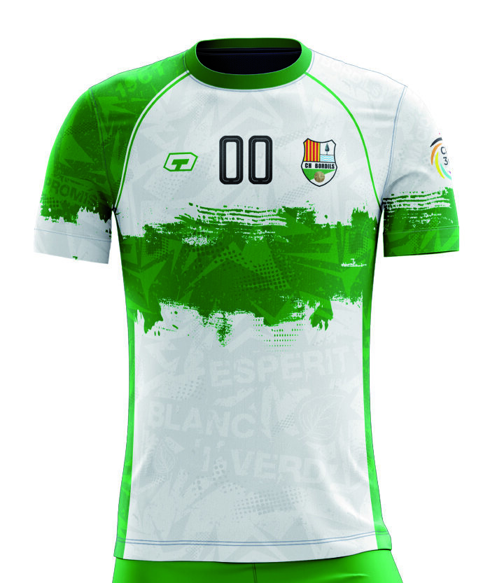 Samarreta model “Esperit Blanc-i-Verd”, versió per a jugadors de les categories base. Teixit sublimat tècnic i transpirable. Fabricada per TECE.